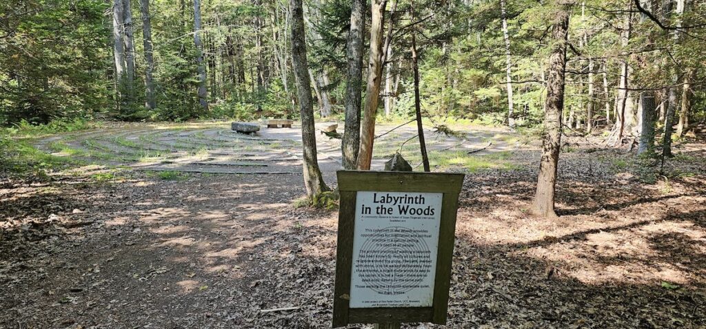The town has a delightful pedestrian-friendly downtown with many shops. We wandered (well, by car) to a curious trail called the Labyrinth in the Woods at Crystal Spring Farm, not to be confused with the assisted living center next door. Even though the sign said “there are no dead ends” in the labyrinth, we seemed to get lost.  That always happens. That might freak out some people, but not me.